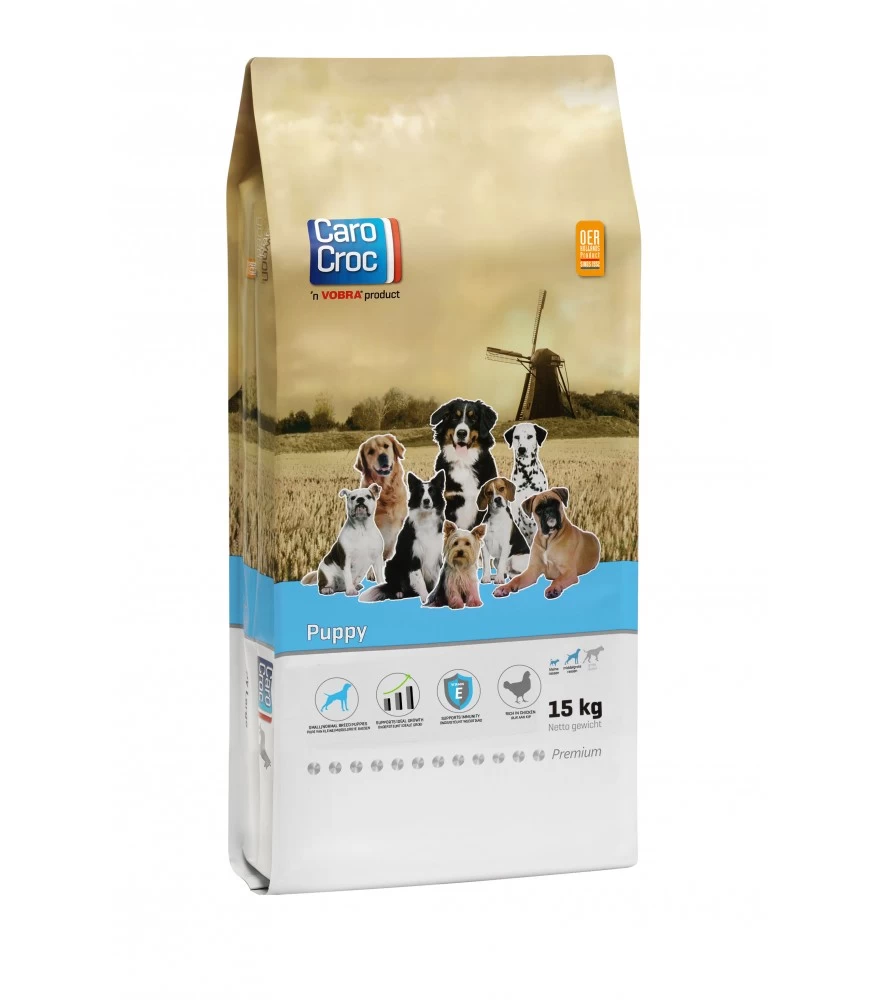 Door de evenwichtige samenstelling van CaroCroc Puppy voer ontwikkelt je pup zich optimaal en legt daarmee een stevige basis voor een gezond en vitaal hondenleven. CaroCroc Puppy draagt bij aan een gezonde huid- en vachtconditie door de optimale verhouding omega-3 en -6 vetzuren. Daarnaast ondersteunen gist en vitamine E de weerstand van je puppy en zijn de brokken licht verteerbaar.