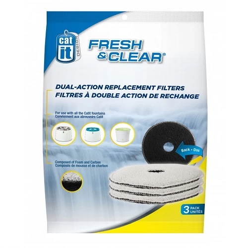 Het schuimfilter vangt puin, haren, voedselresten en bezinksel op. Het actieve-koolfilter absorbeert onzuiverheden in het water en verbetert de smaak en geur van het water.