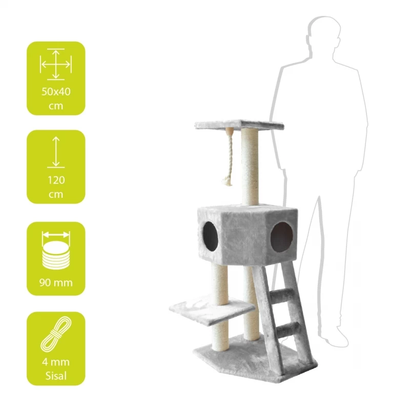 - Met kattenhuisje, trap, speeltouw en uitkijkplateau