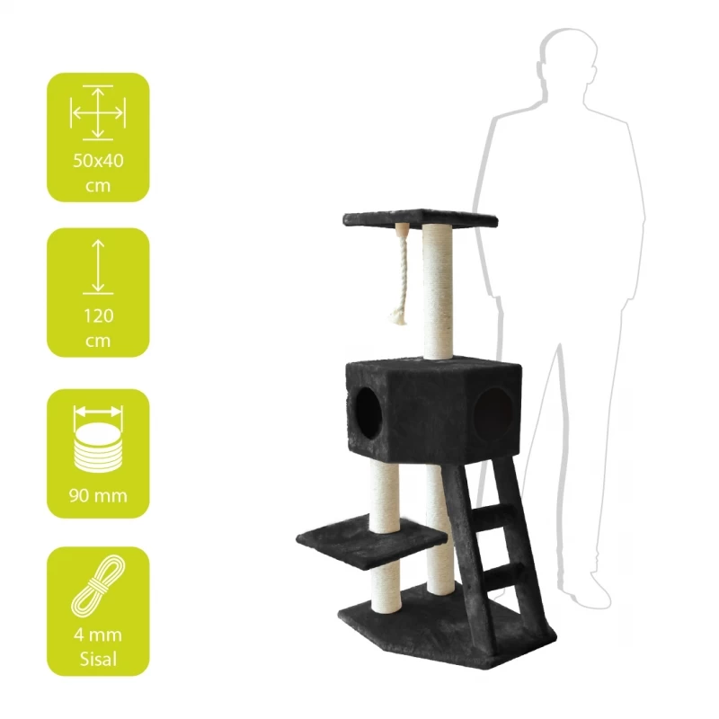 - Met kattenhuisje, trap, speeltouw en uitkijkplateau