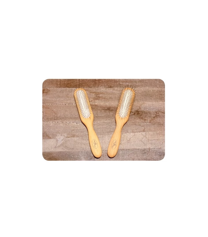 Ook hier is de keuze voor de grootte en het model van de borstel weer terug te brengen naar de grootte van de hand of de grootte van de hond. De keuze voor de diverse lengtes van de pinnen hangt af van de vacht van uw huisdier: Hoe korter de vacht, hoe korter ook de lengte van de pinnen kan zijn. Is de vacht lang, of erg dik, dan gebruik je een borstel met een langere pin, die dieper door de vacht gaat. Daardoor hoeft u niet altijd in lagen te borstelen om ook de onderste vachtlaag te bereiken. Wil u de vacht ook ontklitten, dan kunt u beter wel in lagen borstelen. Kies hiervoor dan een borstel met meer stevigheid en een kortere pin.